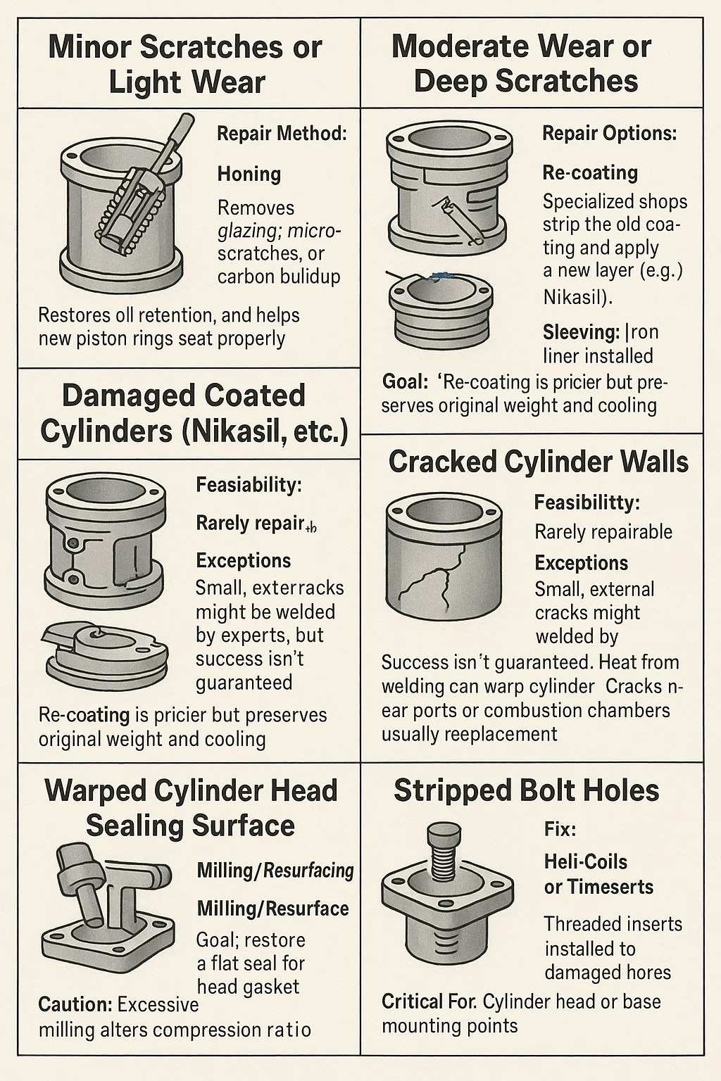 Absolut, cilindri de motociclete poate fi adesea reparat în funcție de tipul și gravitatea deteriorării. Iată o defalcare practică: