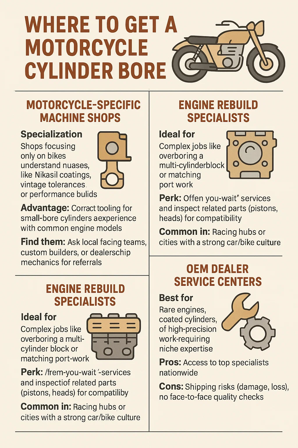 Iată de unde să obțineți un cilindru de motocicleta plictisit, cu considerente cheie pentru alegerea serviciului potrivit: